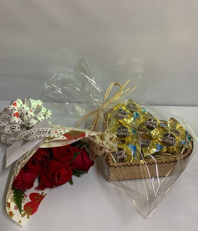COD. AJ1005Buquê com linda cesta de ouro branco